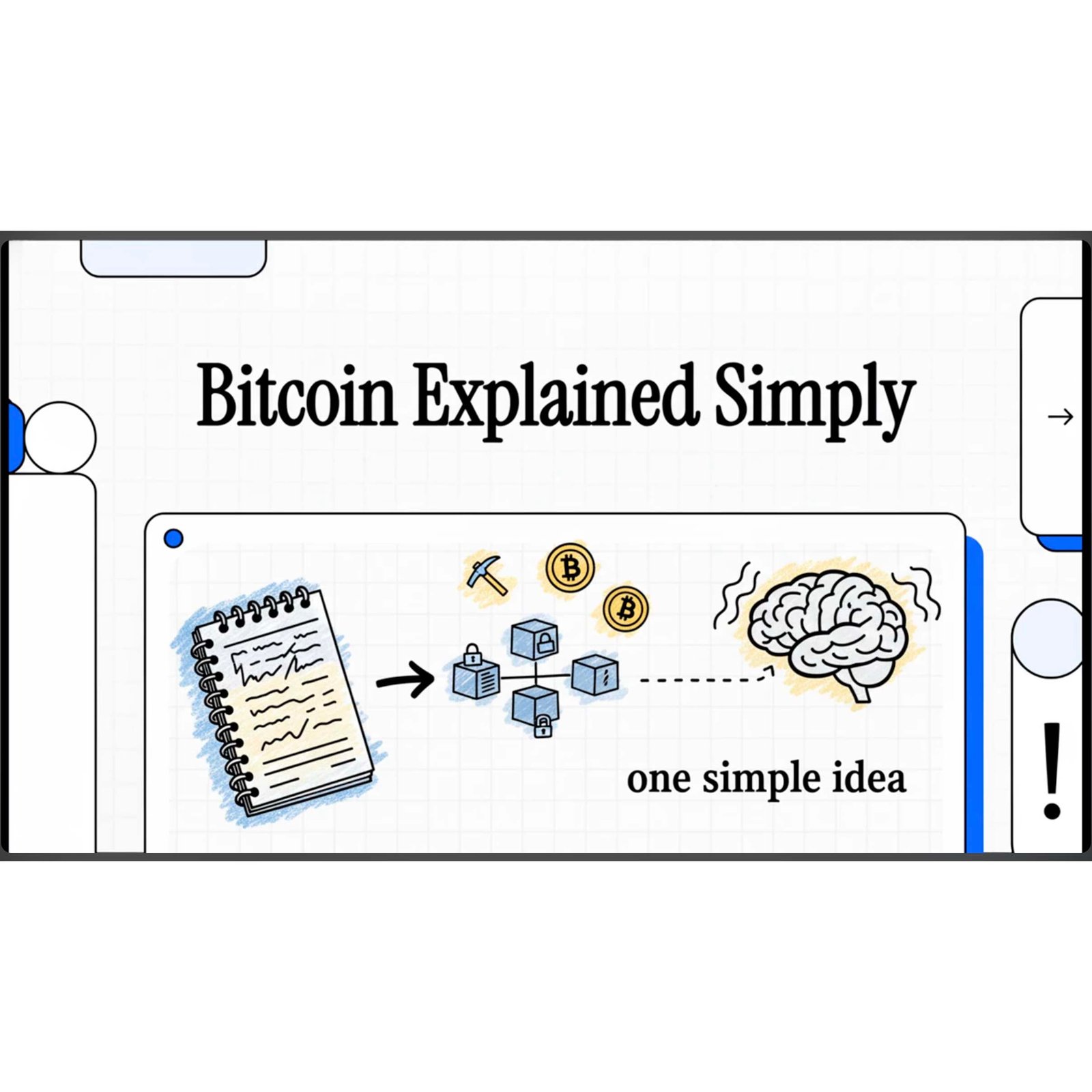 Bitcoin, minus the hype. In 6 minutes, this clip compares blockchain to everyday systems you know, showing how digital money can work without banks—or magic.