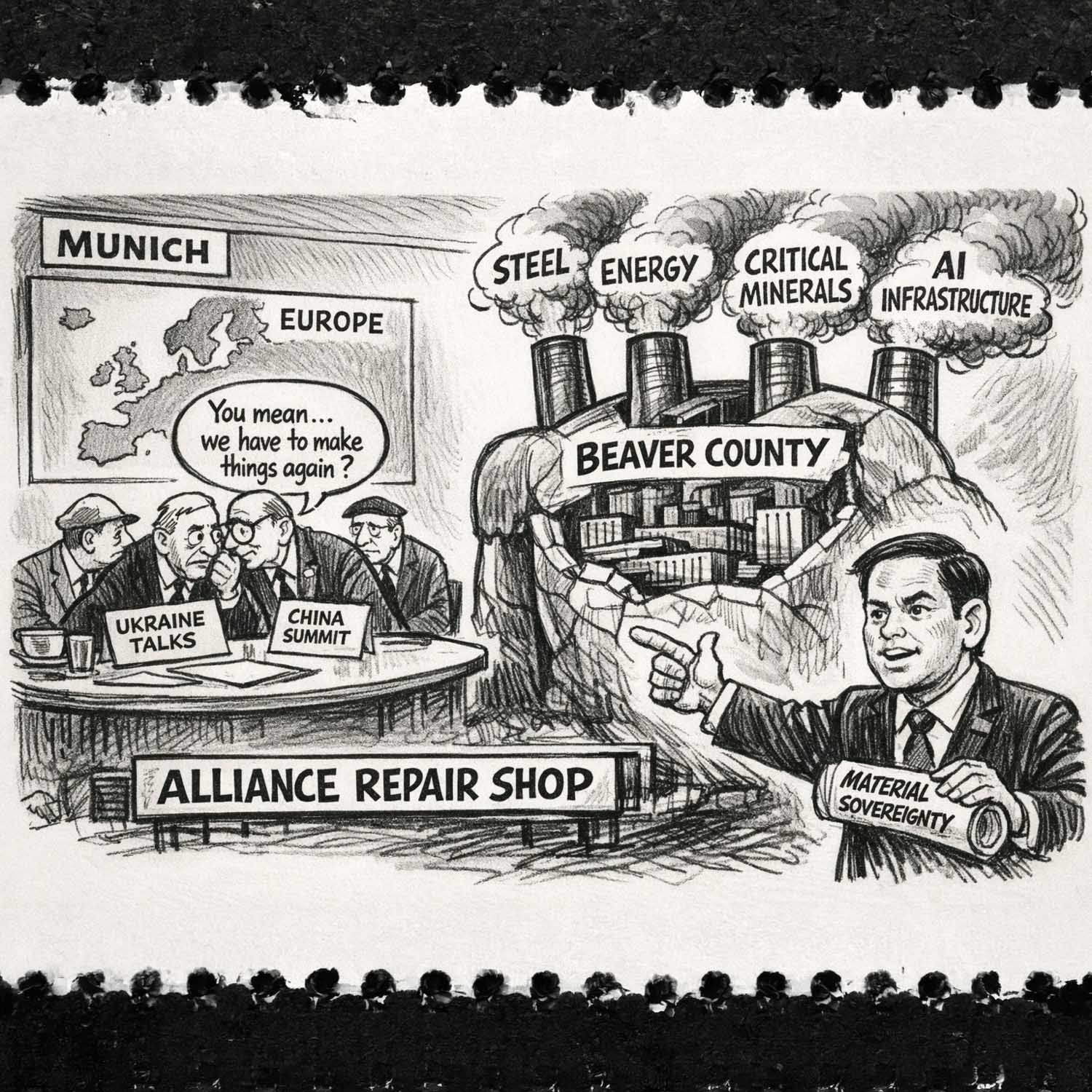 Marco Rubio’s Munich speech argues that sovereignty, industry, and supply chains—not slogans—anchor Western security, with real implications for reindustrialization and places like Beaver County.