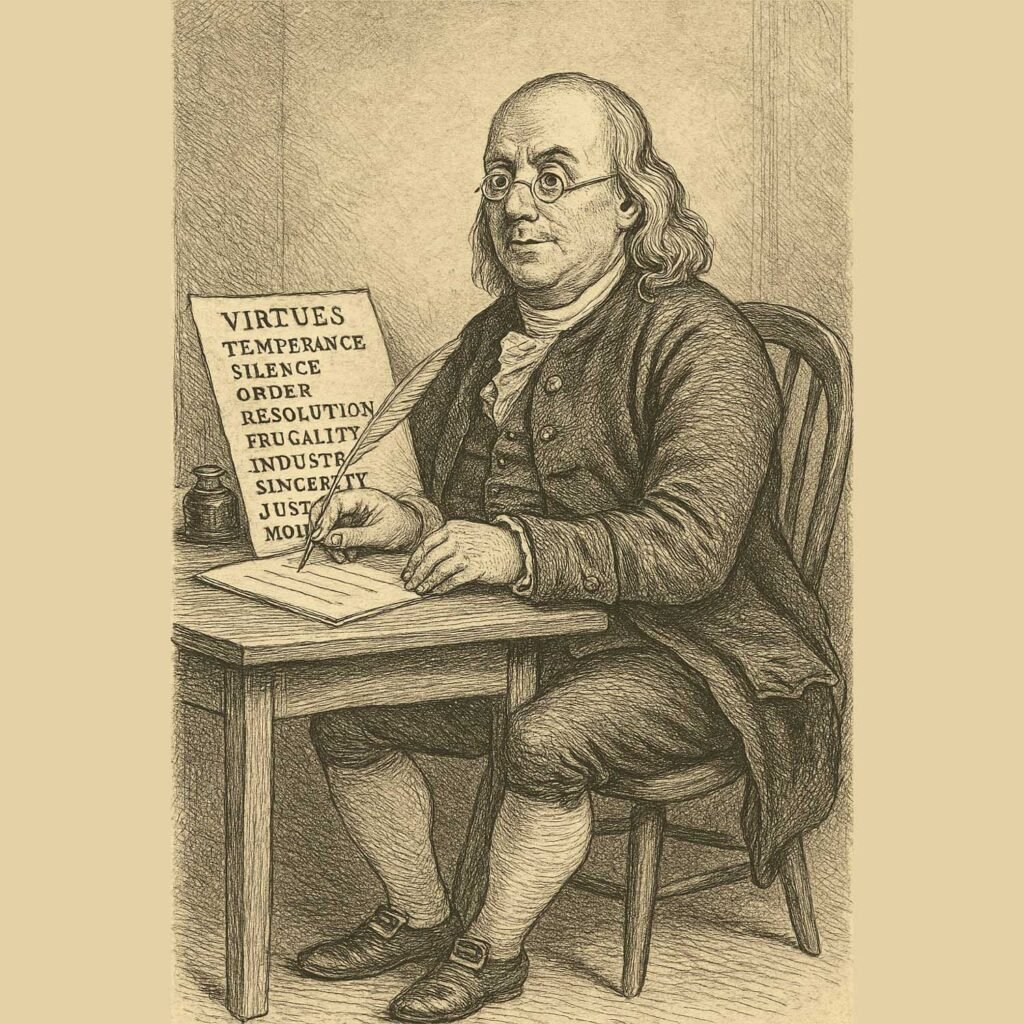 He began life not as the sage of the $100 bill, but as a printer’s apprentice of such modest means that his entire net worth would have fit neatly in the till of a Bridgewater lemonade stand. He was poorly educated, frequently hungry, and surrounded by older brothers who took turns reminding him he would never amount to much. Franklin’s response was not self-pity but self-education. He woke at five, tracked every hour of his day, and trained himself in languages, science, philosophy, and statesmanship. He built what amounted to the first American self-improvement app—his famous 13 virtues chart—except instead of push notifications, it had guilt.