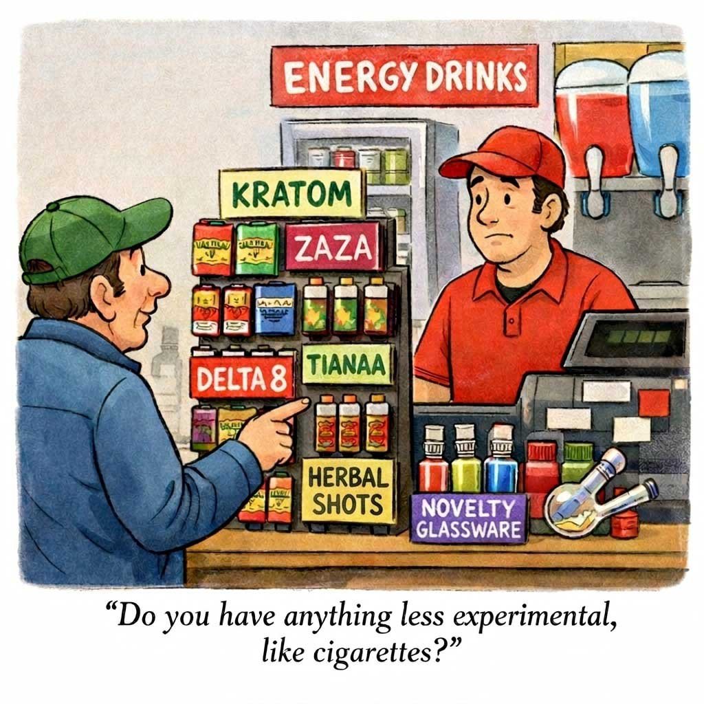 Convenience stores profit from kratom, tianeptine, and delta-8 products, but growing health warnings and regulation risks may turn short-term gains into long-term reputational costs.