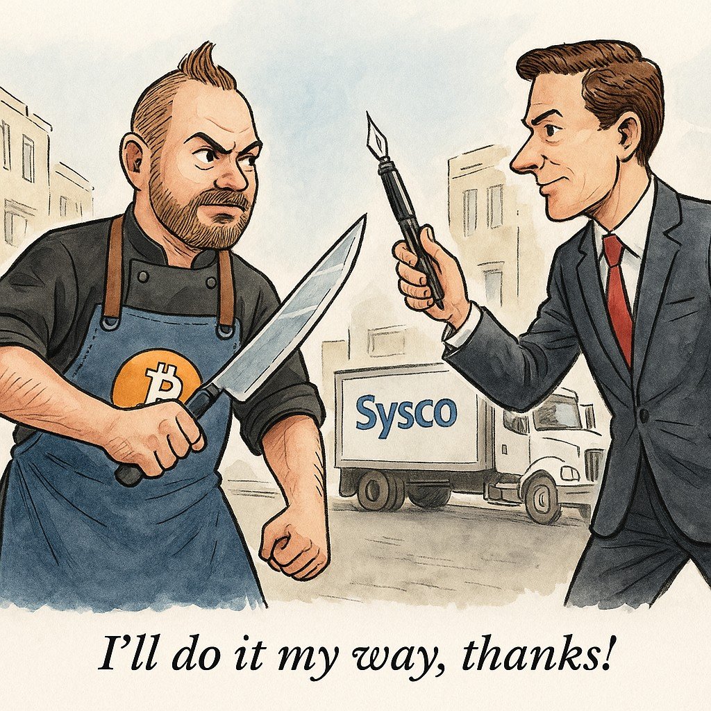 Bitcoin’s architecture mirrors a healthy economy: decentralized, resilient, a little ornery. There is no headquarters to lobby, no merger to bless, no bailout fund to raid. Participants store value, not promises. That single fact could cool the fever of consolidation more effectively than a century of antitrust. Our colossi—Sysco, CVS-Aetna, and Blackstone—are creatures of easy money. Remove the sugar water and they shrink to human size.